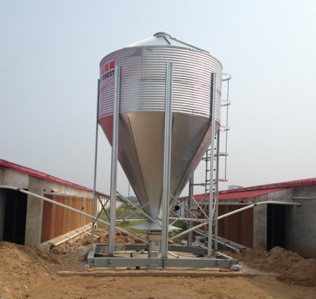 自動(dòng)食槽(箱) 集約化和現(xiàn)代化養(yǎng)豬從哺乳仔豬的補(bǔ)飼直到斷乳后的幼豬、后備豬、繁殖母豬以及生長(zhǎng)肥育豬均采用自由采食的飼養(yǎng)方式,因此,需要不間斷供料的自動(dòng)食槽。自動(dòng)食槽就是在食槽的上部安放一個(gè)飼料貯存箱,貯存一定量的干粉料或顆粒料,在豬采食時(shí)貯存箱內(nèi)的飼料靠重力不斷流入食槽內(nèi), 供豬采食。自動(dòng)食槽的優(yōu)點(diǎn)是,自動(dòng)限制落料,吃多少落多少,不撒漏飼料,干凈衛(wèi)生,自由采食時(shí)有間隔欄限位,豬只不爭(zhēng)斗,有利于生長(zhǎng)發(fā)育,便于實(shí)現(xiàn)機(jī)械化和自動(dòng)化添料,提高勞動(dòng)效率。常用的自動(dòng)食槽有長(zhǎng)方形和圓形兩種,采用長(zhǎng)方形者居多,每一種又根據(jù)豬只的大小做成幾種規(guī)格。①長(zhǎng)方形自動(dòng)食槽。分單面和雙面兩種。單面具有靈活性,但占地面積大,投資較多。雙面的節(jié)約投資,管理也比較方便。長(zhǎng)方形自動(dòng)食槽常用鍍鋅鐵板或冷軋鋼板制造, 也可用半金屬半鋼筋水泥或全鋼筋水泥制造。半金屬半鋼筋水泥自動(dòng)食槽的底槽、側(cè)板用鋼筋水泥部件,其他部分為金屬結(jié)構(gòu)。用全部或部分鋼筋水泥件做的自動(dòng)食槽造價(jià)低,壽命長(zhǎng),但較笨重。②圓形自動(dòng)食槽。制作原理與長(zhǎng)方形的基本相同,飼料桶可以上下移動(dòng)和轉(zhuǎn)動(dòng),以便控制和促進(jìn)飼料流落。通常,自動(dòng)食槽的圓桶用不銹鋼板制造,而底座則用鑄鐵或鋼筋水泥制造。